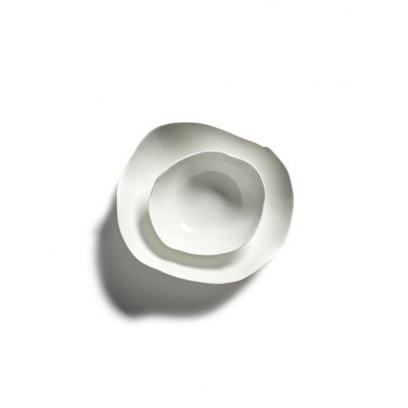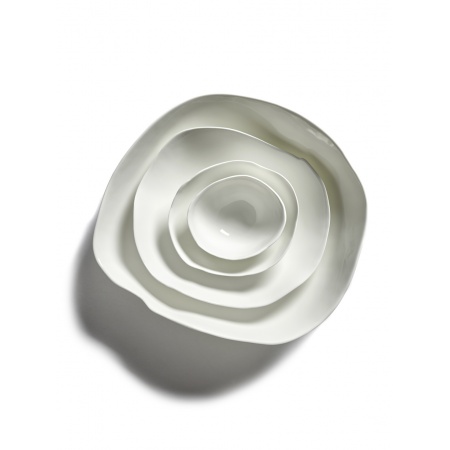 Cette série en porcelaine symbolise le renouveau à différents niveaux. C’est en effet la toute première fois qu’une collection est mise en production où le défaut, l’imperfection et le hasard du processus de production ont droit à l’existence. La vaisselle incarne la suspension à un fil de soie : l’imperfection parfaite. Dimensions: D24 cm x H4 cm. Designer: Roos van de Velde.