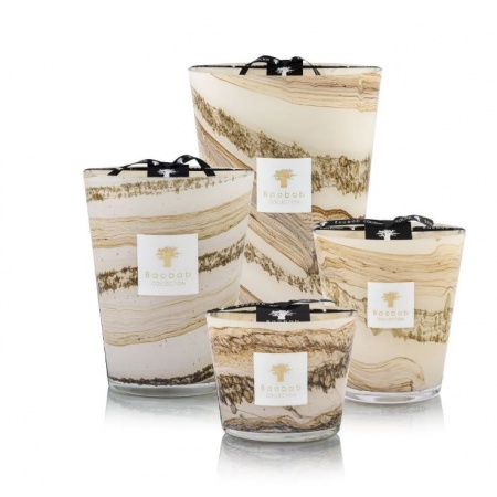 Le verre soufflé bouche de la bougie parfumée Siloli est un camaïeu de beige et brun sur lequel des lignes horizontales sont parsemées de petites alvéoles organiques et aléatoires. Chaque verre est unique et la couleur sable se dissout dans la matière grâce au souffle de l’homme. H 16cm. Brûlage etsimé à 150h. 4 mèches. 2.2kg.