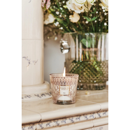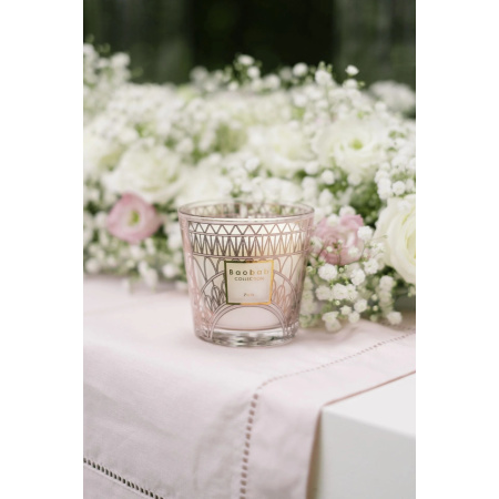 La bougie parfumée Paris est décorée d’une sérigraphie rose poudrée et or reprenant la structure stylisée du bas de la tour Eiffel. Nous célébrons le joli mois de Mai à Paris, des souvenirs des marronniers et des tilleuls en fleurs.