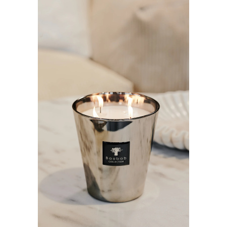 La bougie parfumée Platinum est l'une de nos bougies iconiques, incarnant l'élégance et la sophistication. Elle révèle gracieusement la flamme vacillante qu'elle renferme, projetant une lueur douce et enchanteresse, créant une atmosphère chaleureuse dans votre intérieur. En brûlant, la bougie libère un parfum aux notes riches et épicées.