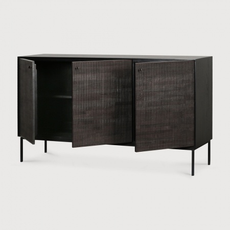 Il est indéniable que le buffet Grooves possède une âme.Chaque ligne du meuble TV Groove est sculptée à la main, ce qui rend chaque pièce vraiment unique. Les petites imperfections font partie de l'histoire, et plus encore : elles renforcent le caractère de Grooves. Le résultat est une surface légèrement différente à chaque fois, chacune avec son propre rythme et sa propre dynamique. Le magnifique teck teinté foncé se poursuit à l'intérieur, où des étagères et des tiroirs accueilleront vos objets les plus précieux. Cette enfilade Grooves est dotée 3 portes. Fabriquée entièrement en teck massif en teinte foncée avec finition vernie et pieds en métal noir. Dimensions: L152 cm x P45 cm x H87 cm. Poids net 65.35 kg