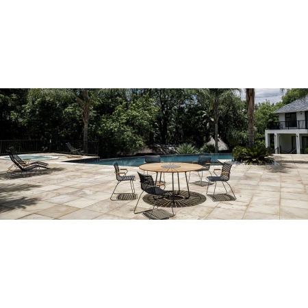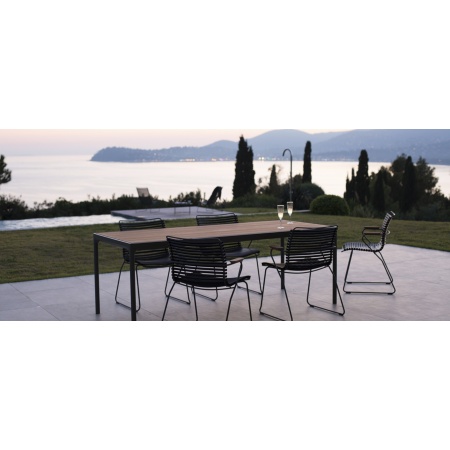 La chaise CLICK est simple, honnête et bien pensée sur le plan ergonomique. Il est beau dans sa répétition autour de la table et comme les lamelles peuvent être remplacées, vous pouvez mélanger et changer les couleurs aussi souvent que vous le souhaitez. Dimensions: H: 45/82 x P: 60 x L: 55 cm. Matériaux: Structure: métal gris poudré. Siège: Lamelles en plastique. Accoudoirs: Bambou. Designer: Henrik Pedersen.