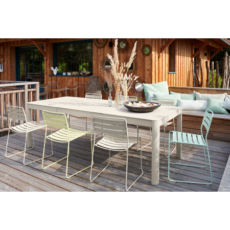 Une structure filaire associée à des lattes fines offrent à cette chaise un dessin très précis, simple et élégant. Cette chaise métal joue la convivialité et le confort avec un encombrement minimum. Avec la chaise Surprising, Fermob continue de faire des extérieurs de véritables pièces à vivre et lieux de partage ! Ce mobilier outdoor se prête aisément aux déjeuners comme aux dîners estivaux. Empilable, cette chaise métal est également très pratique ! Sa résistance aux aléas climatiques finit de nous convaincre. Existe en plusieurs coloris.