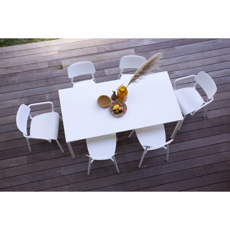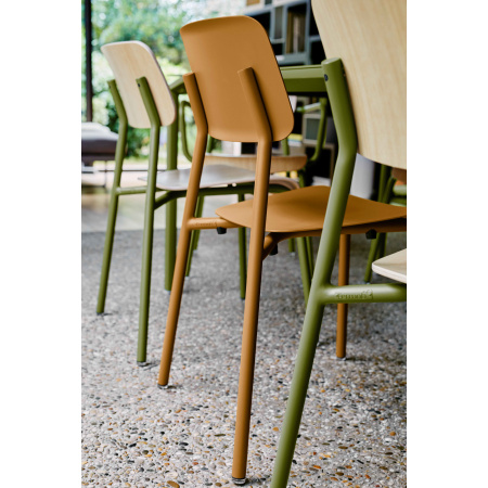 Retombez en enfance et laissez-vous gagner par la nostalgie avec la chaise Studie, inspirée de nos chaises d’écolier. Dessinée par Tristan Lohner, designer et partenaire fidèle de Fermob, elle emprunte aux chaises iconiques de nos salles de classe leurs lignes épurées, revisitées de manière contemporaine. Ce qui lui donne une belle allure stylée ! Quand la simplicité sublime... C’est ce que l’on se dit en regardant la chaise Studie. Son look contemporain très dépouillé est du plus bel effet. Et son assise galbée est un appel à s’y poser : il est visuellement évident que l’on va s’y sentir bien installé... En effet, si cette chaise s’inspire de nos chaises d’écoliers, elle diffère de ces dernières par son confort optimal : le galbe de son assise et de son dossier est idéalement conçu pour épouser les formes de nos corps. Autre différence notable : les patins silence, dont elle est équipée, brevetés Fermob, permettent de la déplacer sur le sol sans bruit, là où manipuler nos chaises d’école en faisait tant (du bruit) ! Enfin, il est facile d’empiler ces chaises en métal pour les stocker : conçues en aluminium, elles sont d’une grande légèreté et leurs patins d’empilabilité les protègent des frottements. Elles sont ultra-résistantes par ailleurs, même dans les climats de bord de mer. Last but not least : conçues en aluminium avec patins démontables, elles sont entièrement recyclables. Un atout de plus au crédit de la chaise Studie ! Choisissez votre couleur parmi les nombreuses teintes du nuancier. Et associez-les à n’importe quelle table Fermob. Disposez-les dehors, sur votre balcon, ou bien rentrez-les, autour d’une table de salle-à-manger. Avec la chaise Studie, que vous repérerez peut-être sur la terrasse branchée de votre restaurant préféré, le champ des possibles est largement ouvert. Existe en plusieurs coloris.