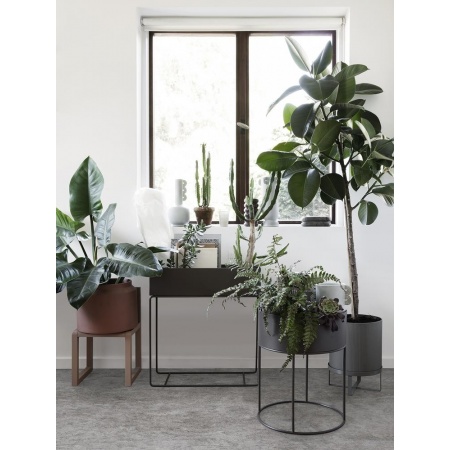 La Plant Box peut être utilisée comme jardinière ou comme console pour la décoration dans toute la maison: stockage temporaire dans le couloir ou encore séparateur pour créer des coins confortables dans les grandes pièces. On peut y mettre au choix des fleurs, plantes, livres, jouets, magazines etc. La Plant Box est élégante et intemporelle, et le design présente un contraste saisissant et intéressant entre la boîte rectangulaire sur le dessus et les pieds métalliques minces. Elle convient également pour une utilisation en extérieur. Dimensions: L60 cm x L25 cm H65 cm. Couleur: Noir