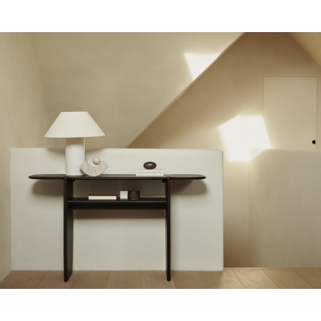La collection PI rend hommage au design du vivant en conservant la force, les courbes et les lignes créées par la nature. Des formes intrigantes se dessinent dans cette finition polie et imparfaite, à la fois élégante et stylée. Chaque console PI est finie à la main pour garantir le respect du caractère unique du bois. Créé par Alain van Havre. Matériau principal: Acajou brun foncé, finition vernie. Dimensions: L130 cm X P40 cm X H75 cm.
