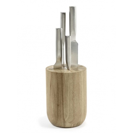Un aimant central veille à ce que les couteaux soient à chaque fois parfaitement rangés à la verticale et un système de ligne simple aide les utilisateurs à distinguer facilement les couteaux dans le bloc. Poids: 3,7 kg. Designer: Piet Boon.