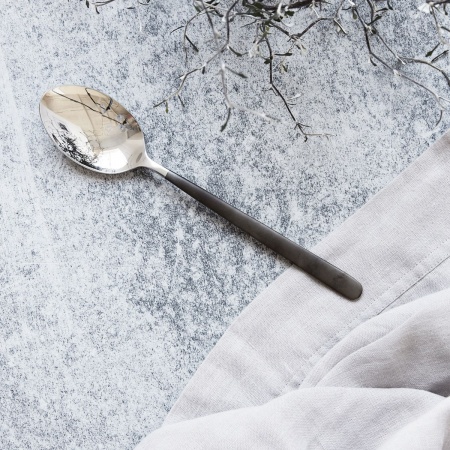 Les beaux métaux sont un succès dans chaque maison. Pourquoi ne pas mettre cette tendance sur la table? La belle cuillère Ox de House Doctor est en acier inoxydable avec une jolie finition en titane foncé sur la tige. La belle combinaison de l'acier inoxydable et du titane ajoute un joli contraste à un simple réglage de table. La cuillère va au lave-vaisselle.