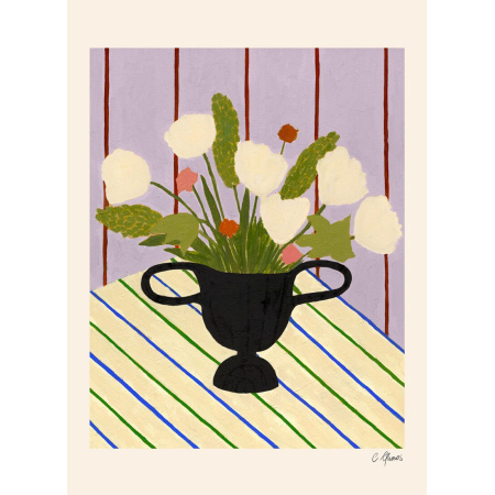 Carla Lianos - Flowers on Striped Cloth - 40x50 cm