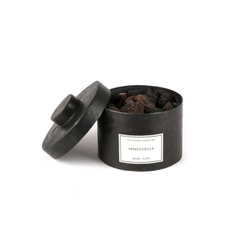 Basée dans les Gorges du Verdon, la maison de parfums Mad et Len nous transporte dans un univers de senteurs brutes : bois, fleurs et épices. Inspirés des pots et fioles d’apothicaires des années 20, le travail du métal est façonné à la main, les parfums sont artisanaux et les bougies sont en cire végétale. Pot pourri d'apothicaire avec pierres de lave. Vendu avec une fiole de parfum Spirituelle de 15ml.