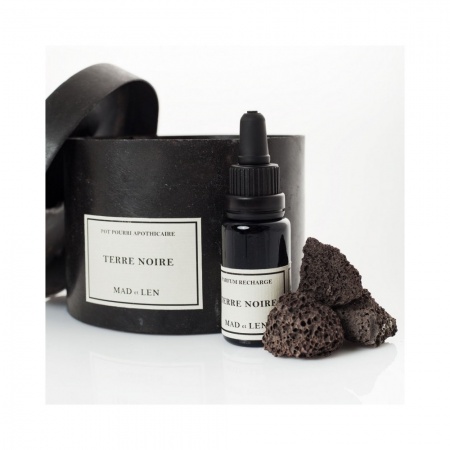 Basée dans les Gorges du Verdon, la maison de parfums Mad et Len nous transporte dans un univers de senteurs brutes : bois, fleurs et épices. Inspirés des pots et fioles d’apothicaires des années 20, le travail du métal est façonné à la main, les parfums sont artisanaux et les bougies sont en cire végétale. Pot pourri d'apothicaire avec pierres de lave. Vendu avec une fiole de parfum Spirituelle de 15ml.