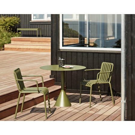 Conçu par les frères français Ronan et Erwan Bouroullec, Palissade est une collection de mobilier d'extérieur pour HAY en acier thermolaqué ou galvanisé à chaud. Unis par un principe commun de géométrie symétrique, la collection Palissade est conçue pour reproduire la même simplicité visuelle et la même force de base. Conçu en couleur et en forme pour s'intégrer sans effort dans un paysage naturel ou un cadre urbain, Palissade est destiné à être utilisé sur une plus longue période et à devenir plus beau au fil des ans. La collection est adaptée à une grande variété d'environnements, des cafés et restaurants aux jardins, terrasses et balcons. Dimensions: L51 cm X L56 cm X H80 cm.