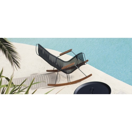 CLICK Chaise berçante - la plupart des gens aiment s'asseoir dans une chaise berçante. Adultes et enfants. Le corps se reposera dans les mouvements de bascule dynamiques - et vous ne pouvez que convenir que ce fauteuil à bascule est synonyme de confort agréable à tous les niveaux. Dimensions: H: 38 / 91,5 x L: 64 x L: 99,5 cm. Matériaux: Structure: métal gris poudré. Siège: Lamelles en plastique. Accoudoirs et glissières: Bambou. Designer: Henrik Pedersen.