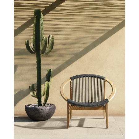 Le fauteui Lounge lFrida a un design distinctif avec un dossier spacieux, une structure ronde et un siège tactile. Grâce à l'assise spacieuse en corde bien tendue, la chaise offre un confort maximal tout en conservant un aspect aéré, magnifique sous tous les côtés et sous tous les angles. Avec sa silhouette sculptée et ses caractéristiques d'assise raffinées, le Frida sera le point focal naturel sur n'importe quelle terrasse. Matière: corde polypropylène | cadre en teck (non-traité). Patins glisseurspatins glisseurs en nylon. Dimensions: L91 cm x H80 cmx P81 cm. Hauteur d'assise: H39 cm.