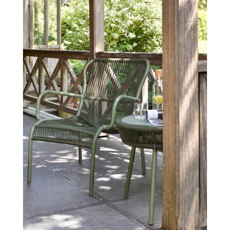 La chaise lounge Loop est à la fois fonctionnelle et esthétique: corde élégante la rend légère et, en plus, empilable. Matière fibre polyéthylène ou corde polypropylène, cadre en aluminium thermolaqué. Patins glisseurspatins glisseurs en nylon. Dimensions: H79cm x L69cm x P78cm. Hauteur d'assise: H39cm.