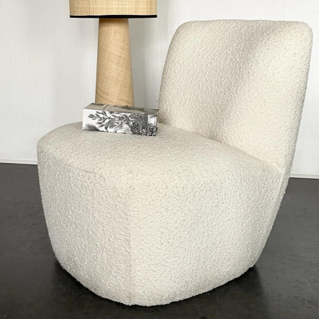 Dossier ergonomique, assise moelleuse, recouvert de tissu texturé bouclette. Le fauteuil Eve se glisse partout grâce à son petit format, tout en ne concédant rien au confort spécialement conçu pour les adeptes du slowlife. Ne nécessite pas de montage.