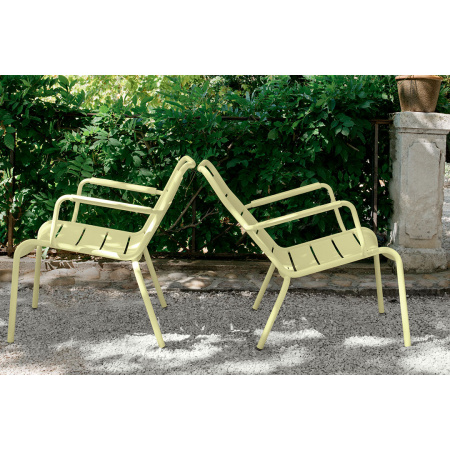 Ah… Luxembourg. Un nom évocateur qui fait immédiatement rêver ! En effet, cette collection emblématique de Fermob, revisitée par le designer Frédéric Sofia, traverse les âges avec un style incomparable ! Offrez-vous l’art de vivre à la française. Donnez à votre extérieur un chic fou… Du chic, certes, mais aussi du confort car ce fauteuil avec accoudoirs est d’autant plus convivial dans sa version redressée : la position de son dossier permet de se sentir divinement bien installé lors d’apéros ou de repas sur le pouce, autour de la table basse à roulettes Luxembourg. Bien-être également assuré par les lattes galbées, qui épousent les formes de votre corps. Le Luxembourg lounge, un fauteuil de salon de jardin en métal, bien entendu, qui a la légèreté de l’aluminium et sa résistance éprouvée aux intempéries et aux UV. Une pièce de mobilier destinée à durer, durer, durer, même en bord de mer… Intemporel, ce fauteuil de jardin design va singulariser votre extérieur, c’est sûr ! Reste à décider pour quel coloris vous allez craquer car il existe 23 teintes au nuancier Fermob… Et reste aussi à déterminer si vous l’accompagnez de la table basse à roulettes Luxembourg, et de la chaise lounge de la même gamme, pour un salon de jardin au top !