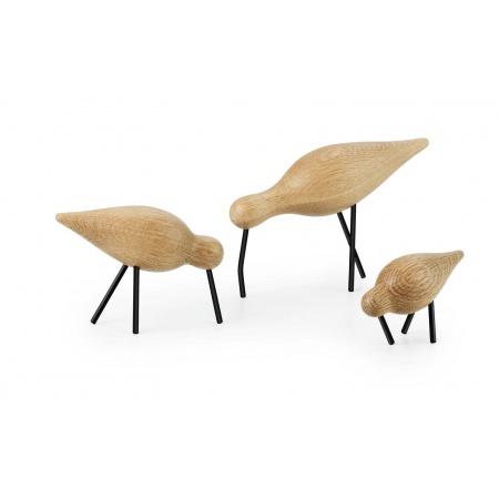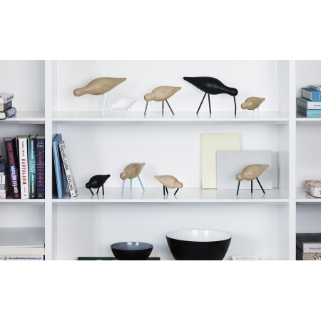 Laissez la décoration de votre maison prendre son envol avec les oiseaux de rivage - une gamme de figurines en bois massif avec une expression stylisée et pleine d'entrain. Le designer islandais Sigurjón Pálsson a créé une gamme d'oiseaux en bois de caractère. La silhouette simple sans ornement des oiseaux de rivage leur donne une expression presque stylisée. Dans le même temps, un soin particulier a été apporté aux petits détails tels que les variations d'épaisseur corporelle, la longueur du cou et le positionnement des jambes et du bec. Cela donne aux trois oiseaux leur propre personnalité et permet au design de prendre vie. Le plus grand des trois oiseaux est inspiré du courlis, avec son long cou et son bec distingué courbé vers le bas. C'est une créature aristocratique. Ses longues jambes font des pas lents et réfléchis tout en regardant prudemment autour. L'oiseau de taille moyenne est alerte et actif comme un jarret. Cet oiseau élégant se trouve souvent avec d'autres échassiers. Enfin, nous avons le bécasseau; un petit oiseau sociable, souvent trouvé en grands troupeaux. Organisez les oiseaux dans un troupeau, combinez différentes couleurs ou incluez un seul oiseau de rivage dans un petit décor composé d'autres effets personnels. L'élégant Shorebird se penchera à la maison dans presque tous les décors et constitue un excellent cadeau pour réchauffer la maison.