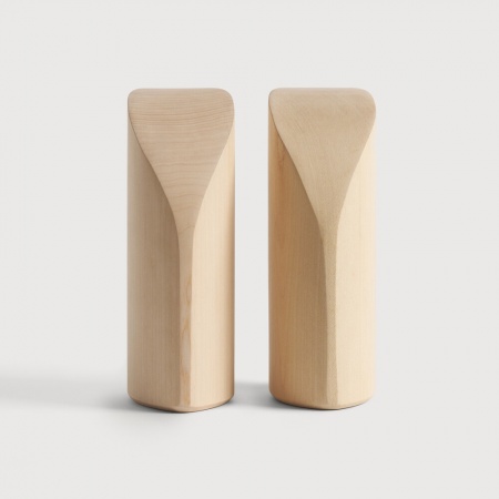 La collection PI honore le design de la nature en conservant la force, les courbes et les lignes, comme la nature l'a prévu. Chaque serre-livre PI est fini à la main pour s'assurer que le caractère individuel du bois est respecté. Des formes intéressantes sont découvertes dans cette finition imparfaite polie et élégante. Designer: Alain van Havre.