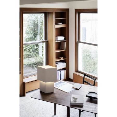 La lampe Romb est née de l'expérimentation, de Broberg & Ridderstråle, d'un carton ondulé qu'ils utilisent beaucoup pour modéliser et développer des projets d'architecture. La forme, un losange, a émergé rapidement et s'est divisée en deux formes ; l'un plus grand que l'autre, qui projette une lumière directe intéressante vers le haut mais aussi indirecte vers le bas, sur la base de la forme. La pièce fonctionne bien sur des espaces étroits comme des étagères ou des rebords de fenêtre, et a une forte présence sculpturale, qu'elle brille ou non. Romb est fabriqué à partir d'acier embouti sur mesure avec des bords sans couture et une grande attention aux détails. Designer: BROBERG & RIDDERSTRÅLE. Matériel : Aluminium. Dimensions : Dia (abat-jour) : 39 cm ; Dia (base) : 20 cm ; H : 48 cm. Caractéristiques du câble : câble PVC, Noir, 250 cm. Source de lumière incluse. Douille E27. Couleur : Cotton.