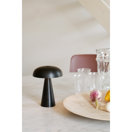 Associez l'éclairage à l'ambiance avec Como SC53, une lampe de table portable de Space Copenhagen. Fabriqué à partir d'aluminium anodisé, la base robuste de Como se rétrécit vers un abat-jour légèrement incurvé en forme de champignon. Cette lampe alimentée par batterie peut fonctionner pendant onze heures au réglage le plus élevé, avec une option de batterie supplémentaire qui permet un fonctionnement supplémentaire. Il se recharge facilement avec un câble USB magnétique ou un plateau de chargement. Processus de production: la base et l'abat-jour sont en aluminium extrudé. Le compartiment à piles est en ABS moulé. Dimensions: Ø15,6 cm x H21 cm. Source lumineuse et classe d'efficacité énergétique ; Ampoule LED 1W: Rendement lumineux: 100 lumen. Dimmabilité 3 niveaux (40% - 70% - 100%). Longueur de la corde 400 cm. Poids: 0,5 kg. Couleur : Noir.
