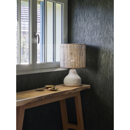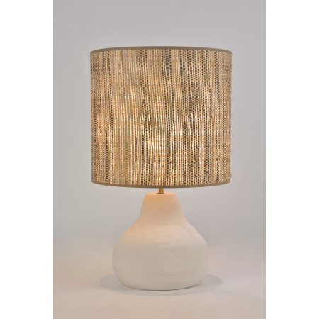 Lampe en céramique mat. Abat-jour forme cylindre en bana. Équipée d'un cordon textile. Coloris : Blanc ou terracotta Taille : M ou L
