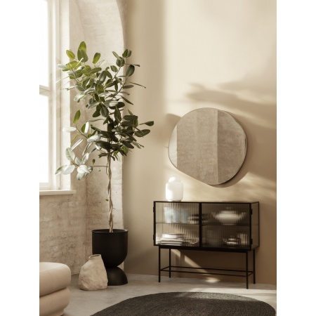 La série Pond allie forme et beauté en utilisant des formes organiques, invitant des formes ouvertes et fluides dans votre maison et transformant ce miroir fonctionnel en un élément mural décoratif. Les bords incurvés sont maintenus par un cadre mince en laiton et peuvent être suspendus dans n'importe quelle direction afin que vous puissiez trouver l'ajustement parfait pour votre espace. Dimensions : L: 87 cm, H: 94 cm, D: 1.5 cm. Matériel: verre miroir. Support en MDF avec un cadre en zinc plaqué laiton Vis en forme de L pour le montage mural incluses. Conception enregistrée Conseils d'entretien: essuyez avec un chiffon doux humide ou nettoyez doucement avec une éponge douce et un détergent doux.