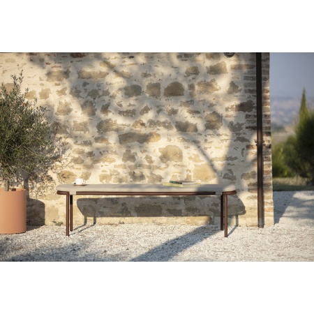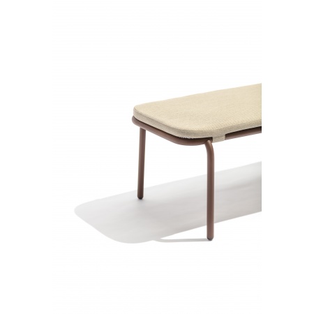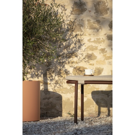 Banc de la collection Starling en inox thermolaqué avec tissu Crevin Vita. Crevin Vita (catégorie A) est un tissu d'ameublement unique pour une utilisation conjointe intérieur-extérieur. Vita waterproof a un aspect simple et naturel et peut être facilement nettoyé par un lavage en machine domestique. Il est fini avec une protection contre les taches et est livré avec une stratification imperméable. 100% recyclable - Entretien facile - Résistant à l'eau chloré et à l'eau de mer - Résistant aux moisissures - Respirant - Séchage rapide - UV résistant. Dimensions: L180 cm x L59 cm x H45 cm. Designer: Studio Segers.