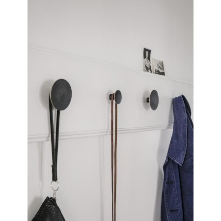 Des patères au mur ou des boutons sur la porte de votre armoire peuvent faire toute la différence dans une pièce. Inspirés par le monde des bijoux et de la joaillerie, nous avons développé un nouveau concept de patères et boutons. Ils embellissent votre maison avec l'esthétique classique de matériaux honnêtes, tels que la fonte, les pierres semi-précieuses, le marbre ou le laiton. Cette patère ronde est en laiton massif avec patine noire et bord poli. Le laiton massif est un matériau naturel qui se patinera avec le temps. Vis incluses. Dimensions: D4 cm H2,5 cm. Taille S. Couleur: Laiton noir