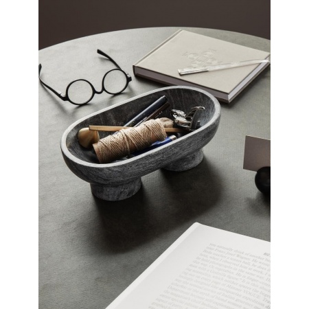 Défiant l'expression d'un bol classique, le bol Alza en marbre indien Selvara a un design surélevé avec son plateau basé sur un plateau solide. À la fois léger et relié à la terre, ce design unit les contrastes et permet de les réunir dans un magnifique bol en marbre noir. Le marbre étant un matériau naturel, de légères variations d'un produit à l'autre peuvent se produire. Cet objet de décoration en marbre peut servir de bol, de plateau ou encore de vide-poche. Dimensions: L25 cm x H9 cm x P14 cm. Couleur: Noir