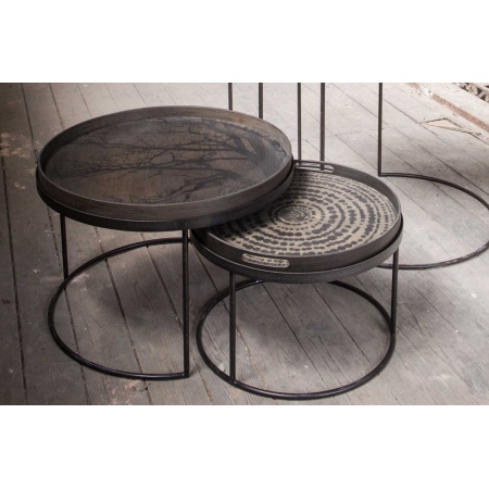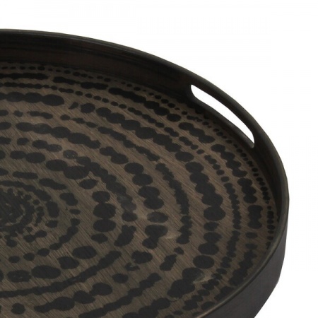 Plateau rond en bois peint à la main et sérigraphié.Ce plateau de la collection Tribal Quest est Inspiré des imprimés et motifs tribaux de d'Afrique et d'Indonésie. Chaque plateau est fait à la main, ce qui rend le produit unique. Dimensions: D48 cm (taille S )Couleur: Black Beads (perles noires) Designer: Dawn Sweitzer