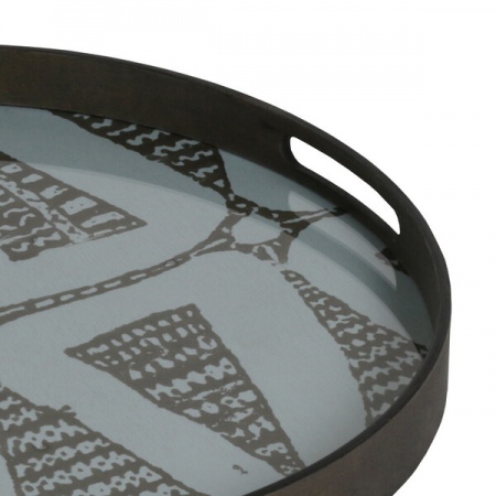 La collection de plateaux Wabi Sabi s'inspire de la nature. La designer Dawn Sweitzer explique: «En voyageant à travers les montagnes de la crête bleue, la vue est devenue presque comme une peinture à l'aquarelle en couches. Le bleu du ciel, les couleurs grises et brumeuses étalaient l'horizon. Au coucher du soleil, il a pris une toute nouvelle palette de couleurs avec des teintes chaudes d'automne comme la terre de sienne, le sable, le sépia. Ou comment trouver la beauté dans ce qui n'est pas si parfait. Socle peint à la main - verre sérigraphié - bord en bois. Dimensions: D48 cm x H4 cm. Taille S. Couleur: Graphite Bohemian