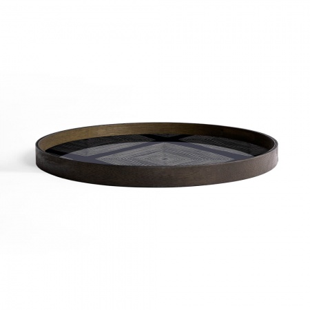 Le mouvement organique rencontre les formes linéaires dans la collection de plateaux Linear Flow. Inspiré par les dessins à l'encre au début du processus de conception, lorsque le pigment frappe le verre, il prend une vie remarquable. Des effets complémentaires se révèlent de manière inattendue, où des motifs linéaires dessinés et peints à la main génèrent une finition vraiment distinctive. Plateau en verre peint à la main avec bord en bois. Dimensions: D61 cm x H4 cm. Motif: Ink Linear Squares. Designer: Dawn Sweitzer.