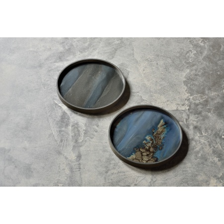 Le mouvement organique rencontre les formes linéaires dans la collection de plateaux Linear Flow. Inspiré par les dessins à l'encre au début du processus de conception, lorsque le pigment frappe le verre, il prend une vie remarquable. Des effets complémentaires se révèlent de manière inattendue, où des motifs linéaires dessinés et peints à la main génèrent une finition vraiment distinctive. Verre peint à la main - bord en bois. Dimensions: D30 cm x H3 cm. Poids: 1 kg.