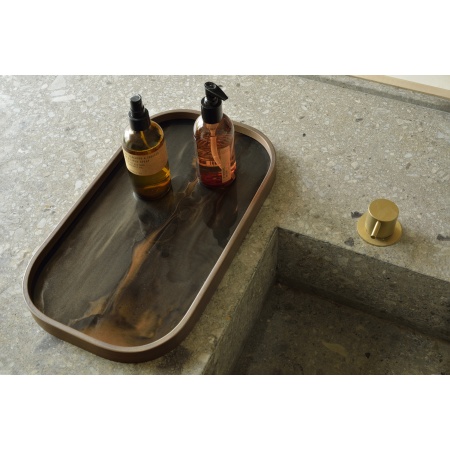 Le mouvement organique rencontre les formes linéaires dans la collection de plateaux Linear Flow. Ce plateau de service en verre organique Bronze est inspiré des dessins à l'encre au début du processus de conception, lorsque le pigment frappe le verre, il prend une vie remarquable. Des effets complémentaires se révèlent de manière inattendue, où des motifs linéaires dessinés et peints à la main génèrent une finition vraiment distinctive. Verre peint à la main - jante en bois. Dimensions: L42 cm x P24 cm x H3 cm. Poids: 1,5 kg. Designer: Dawn Sweitzer