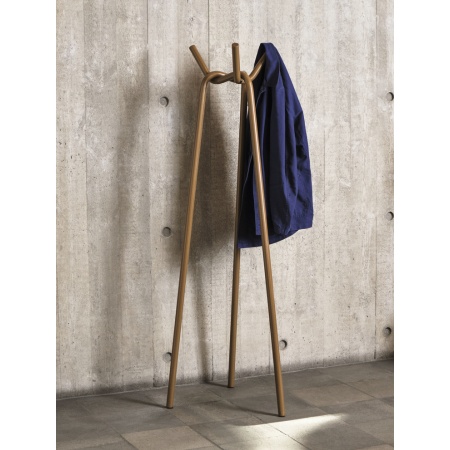 Conçu par le designer japonais Jin Kuramoto, Knit est un porte-manteau simple et emblématique au design sculptural distinctif. Composé de trois tuyaux en acier laqué par poudre qui sont interconnectés de manière tridimensionnelle, les tuyaux sont solidement « tricotés » ensemble pour se soutenir et créer la force du corps. Inspiré par l'expérience tactile de toucher des matériaux et les processus expérimentaux de pliage et de tricotage de cordes et de tiges métalliques, Knit a été développé comme une extension des options de garde-robe et de suspension de vêtements de HAY dans un design emballé à plat facile à assembler. Dimensions: 49.5x 50.5 x H161.5 cm.
