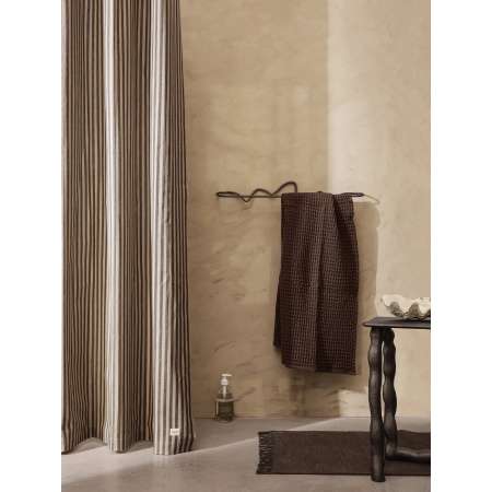 Courbure est une série d'accessoires pour la maison aux formes organiques, fabriqués à la main en laiton pur et noirci, avec une finition mate. Les courbes fantasques se juxtaposent à la solidité du matériau et apportent une touche féminine et fonctionnelle à toute salle de bains ou cuisine. Avec le Porte-serviettes Courbure, votre serviette restera fraîche et sèche jusqu'à ce qu'elle soit nécessaire. Fabriquées à la main, aucune pièce n'est identique à 100%.