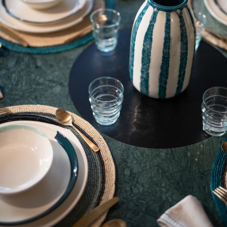 Un retour à la nature s'opère avec ces sets de table en raphia, noués artisanalement. Les sets de table Globe ponctueront vos tables de couleurs joyeuses et chaleureuses.