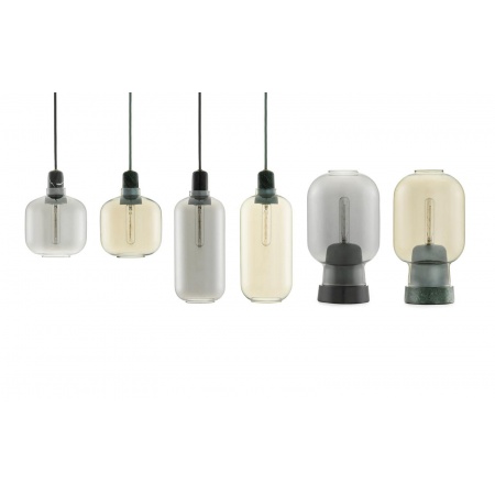 Amp est une gamme de petites lampes inspirées des anciens amplificateurs à lampes des années 1960. Les formes uniques et les matériaux classiques du marbre et du verre ajoutent une touche nostalgique et en même temps contemporaine à Amp. L'ampoule décorative émet une lueur étonnante à travers les abat-jours en verre or / vert et fumée / noir, tandis que l'opacité du verre blanc / blanc met en évidence la forme de la lampe, la faisant apparaître comme une silhouette esthétique pure et fantomatique. La collection de lampes produit une lumière belle et confortable, et le design sophistiqué peut faire partie de nombreux décors intérieurs différents. Accrochez une lampe Amp dans le couloir, dans un coin du salon ou créez un groupe de lampes Amp sur votre table de salle à manger pour un effet de salle de bal moderne. Conçu par Simon Legald.