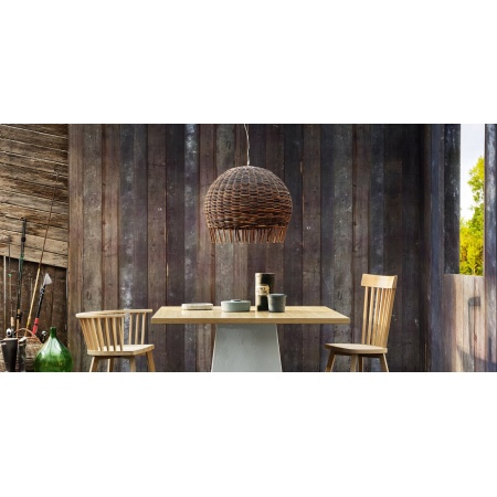 Suspension en rotin crocodile tressé, puissance max. 20 W, 220 Volt, ampoule non fournie. Dimensions: D70 cm x H62 cm. Designer: Paola Navone.