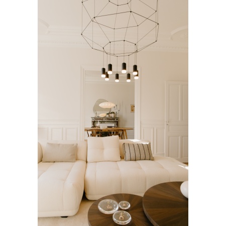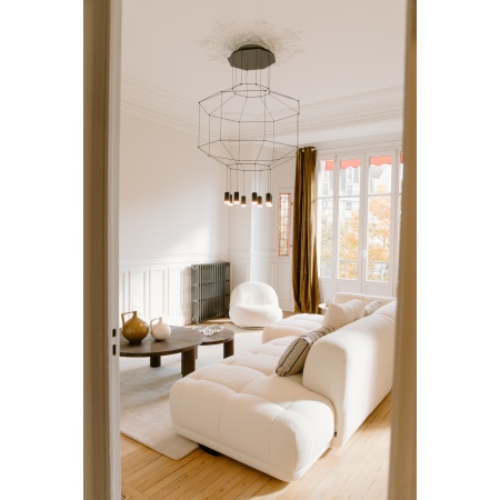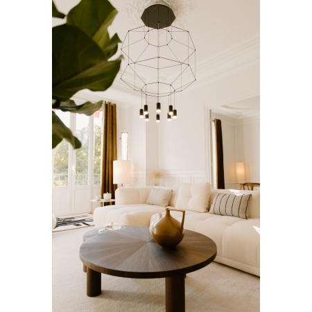 Wireflow, conçu par Arik Levy. Luminaire suspendu qui réinterprète de manière contemporaine l’esthétique des lampes araignées par un exercice de simplification explorant son essence et rehaussant son contour avec une grande délicatesse mais une forte présence formelle. Son apparence, s’agissant d’une structure de câbles fins terminés par 8 LED , se rapproche discrètement des lampes araignée classiques, conférant à ce type de luminaires une nouvelle dimension innovante et futuriste. Grâce au logiciel de configuration de produit CREA, vous pouvez modifier le design afin de l’adapter aux besoins du projet. Source de lumière : 8 x LED 4,5W 350mA. LED 2700 K. CRI >80. 3922 lm. 109 lm/W. Driver Courant Continu 350mA. 110-240V. 50/60Hz. Dimming: DALI-2, 1-10V, Poussoir. Matériaux : Diffuseur: Verre pressé. Structures horizontales: Acier. Corps: Aluminium. Palère: Acier.