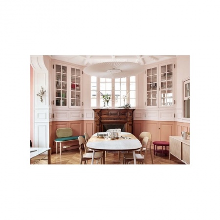 Le plissage et l’envergure de Carmen rendent son graphisme captivant. Le studio PaulinePlusLuis, a pensé pour HARTÔ cette suspension comme une danseuse. Les lignes de sa jupe se répètent et viennent rythmer l’espace dans laquelle elle se trouve. Quand Carmen entre en scène, elle ne passe pas inaperçue. Sublimée par son disque lumineux, elle a été conçue en partant d’expérimentations sur le textile. L’approche créative de ce jeune duo à l’origine de la suspension est intuitive. Elle se nourrit du quotidien. La polyvalence du traitement qu’ils accordent à la lumière rend leurs créations uniques. Le studio retrouve HARTÔ sur l’importance accordée aux motifs et lignes répétitives. Structure centrale en métal laqué mat, tissu plissé en PES ou Trevira CS. Câble en textile (longueur 200cm). Bandeau de LED, 12W (incluse). Dimensions: D128 cm. Epaisseur: 3,4 cm. Poids: 1,5kg. Designer: PaulinePlusLuis Studio.