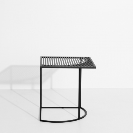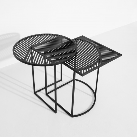 Du plan au volume, du volume au plan,la table d'appoint design ISO joue des perspectives et démarque sa surface utile par un jeu de trompe l’oeil. Les ombres deviennent volumes et les volumes deviennent plans. Avec ces deux tables gigogne ISO-A (rond) et ISO-B (carré), POOL réaffirme son style hyper-graphique. Chacune des tables prise individuellement met à l’honneur un motif ; les deux tables présentées ensemble en créent un nouveau : de leur superposition nait un moirage, et les motifs prennent vie. Dimensions: L40 cm x L40 cm H42,5 cm Couleur: Noir. Designer: POOL