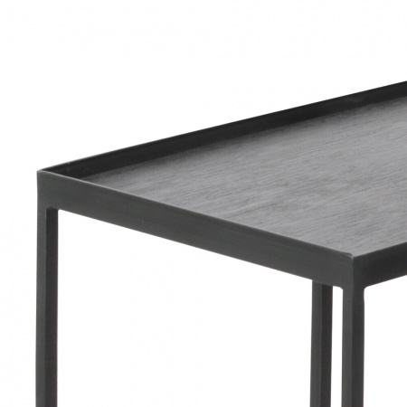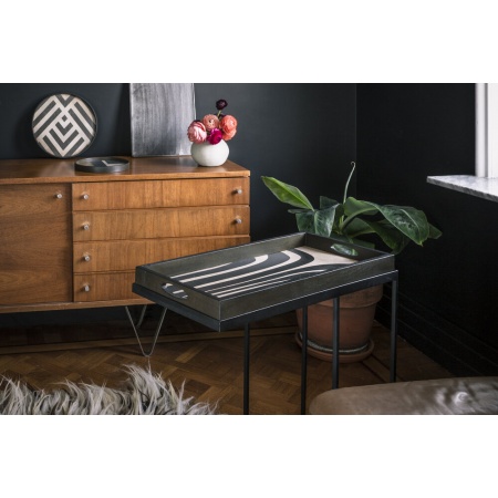 La table à plateau est l'une des pièces les plus polyvalentes d'Ethnicraft: bien qu'elle remplisse sa fonction de table d'appoint, sa capacité à adopter différents plateaux vous permet de mélanger ou d'assortir différentes couleurs et motifs, créant une pièce personnelle qui vous est unique. Et bien sûr, un ensemble équivaut à deux fois le plaisir et la créativité. À combiner avec un plateau rectangulaire moyen. Plateaux à commander séparément. Structure en métal noir - bois teinté noir. Dimensions: L70 cm x L32 cm x H64 cm. Designer: Dawn Sweitzer.