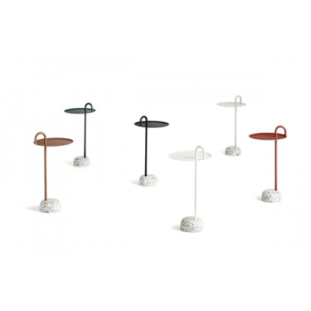La table Bowler de Shane Schneck est une table d’appoint compacte idéale pour les petits espaces. Le tube unique qui s’étend vers le haut crée un profil défini, qui se double d’une poignée fonctionnelle aussi. La tige, la poignée et le plateau sont fabriqués en acier enduit de poudre, avec une base de granit solide qui fournit la stabilité, mais il est encore assez léger pour se déplacer. Bowler est emballé à plat et est facile à assembler, ce qui le rend adapté à toutes sortes d’environnements nationaux et d’entreprise. Dimensions: Ø36 cm X H70,5 cm.