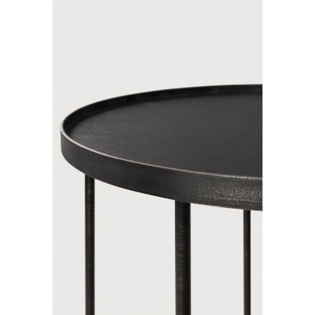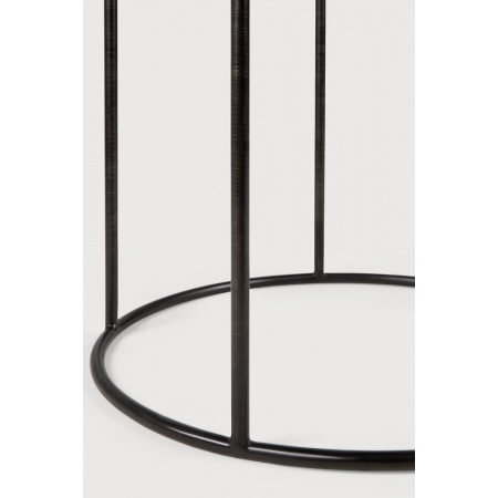 La table à plateau ronde est l'une de nos pièces les plus polyvalentes : si elle remplit sa fonction de table d'appoint, sa capacité à adopter différents plateaux vous permet de mélanger ou d'assortir différents motifs et couleurs, pour créer un meuble à votre image. Et bien sûr, un set est synonyme de deux fois plus de plaisir et de créativité. À combiner avec un petit plateau rond. Plateaux non inclus et à commander séparément. Couleur et matériaux : Cadre en métal noir - bois teinté noir. Dimensions : Dia: 49 cm ; H: 66 cm.