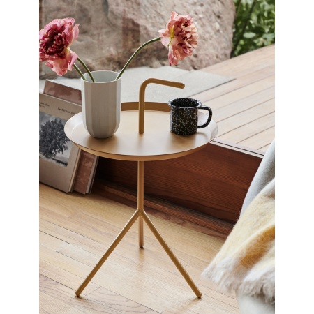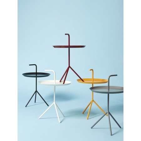 La table d'appoint portable de Thomas Bentzen porte bien son nom "Don't Leave Me". Abrégé en DLM, il est doté d'une poignée pratique qui permet de transporter la table en métal d'une pièce à l'autre. Bien qu'il ait une structure légère et portable, les trois pieds inclinés offrent une grande stabilité. Disponibles en deux tailles, les DLM et DLM XL constituent des alternatives fonctionnelles aux tables basses traditionnelles. Dimensions: Ø38 X H58. Designer: Thomas Bentzen.