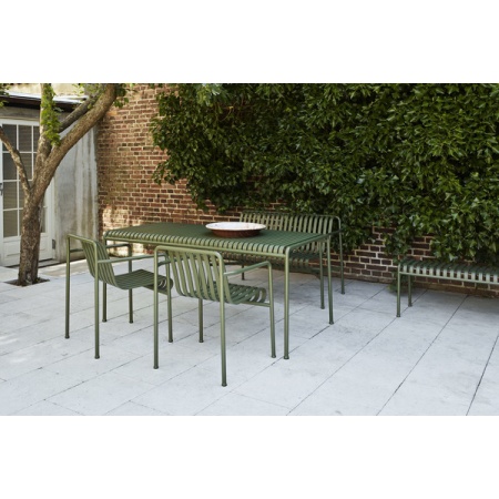 Conçue par les frères Français Ronan et Erwan Bouroullec, Palissade est une collection de meubles d’extérieur pour HAY en acier en poudre ou chaud galvanisé. Unie par un principe commun de géométrie symétrique, la collection Palissade est conçue pour reproduire la même simplicité visuelle et la même force de base tout au long. Conçu en couleur et en forme pour s’intégrer sans effort dans un paysage naturel ou un cadre urbain, Palissade est destiné à être utilisé sur une plus longue période de temps et devenir plus belle au fil des ans. La collection est adaptée à une grande variété d’environnements, des cafés et restaurants aux jardins, terrasses et balcons. Dimensions: L170 x W90 x H75