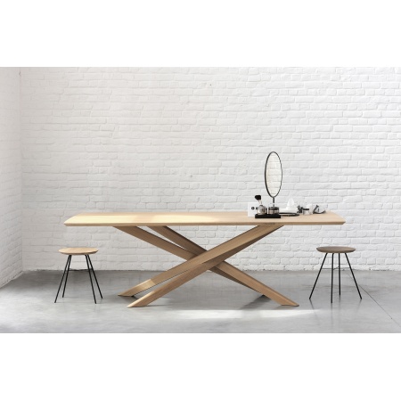 La table à manger en chêne massif Mikado, conçue par Alain van Havre, est l'un des designs les plus reconnaissables d'Ethnicraft depuis des années. Son caractère sculptural est le résultat d'une recherche d'un équilibre entre fonctionnalité et stabilité. Les jambes de Mikado s'emboîtent comme un puzzle bien pensé. Fabriqué à partir de chêne massif avec une finition à l'huile de cire dure. Dimensions: L203 cm x P106 cm x H76 cm. Poids: 82 kg.