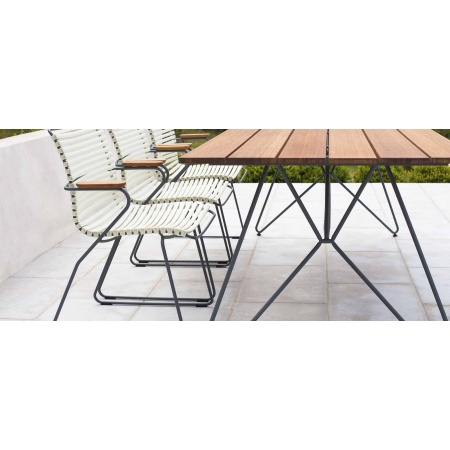 Table d'extérieur SKETCH avec lamelles en bambou. Les beaux pieds en métal sculptés donnent à la table SKETCH un look minimaliste. La construction des pieds rend la table complètement stable. Le plateau de table en bambou est pré-huilé. Dimensions: L220 x L88 x H74 cm. Structure: métal gris foncé enduit de poudre. Plateau de table: lamelles de bambou. Designer: Henrik Pedersen.